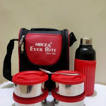 Stainless Steel Tiffin Box with Bag – 4 Compartments & Bottle